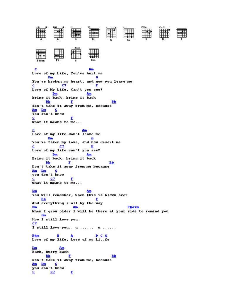 Acordes De Love Of My Life : Savesave love of my life queen acordes for later. Acordes De Love Of My Life : Love of my life y otras muchas canciones de queen traducidas al espanol las podras encontrar en traduce letras!