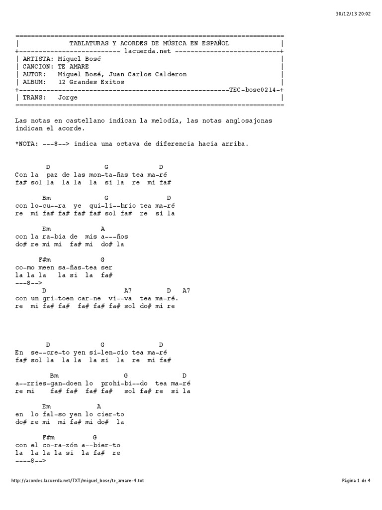 Acordes De Te Amare Miguel Bose - Te amare letra de miguel bose lyrics. Acordes De Te Amare Miguel Bose / Te amare de miguel bose.