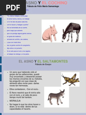 El Asno Y El Cochino Fabulas De Samaniego - El asno y el cochino un asno miraba con envidia la suerte de un marrano y quejndose de su destino, deca :