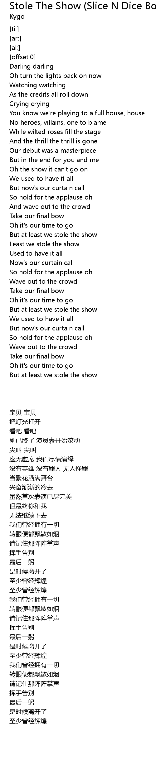 Kygo Stole The Show Lyrics / So hold for the applause, oh. Kygo Stole The Show Lyrics : Least we stole the show +.