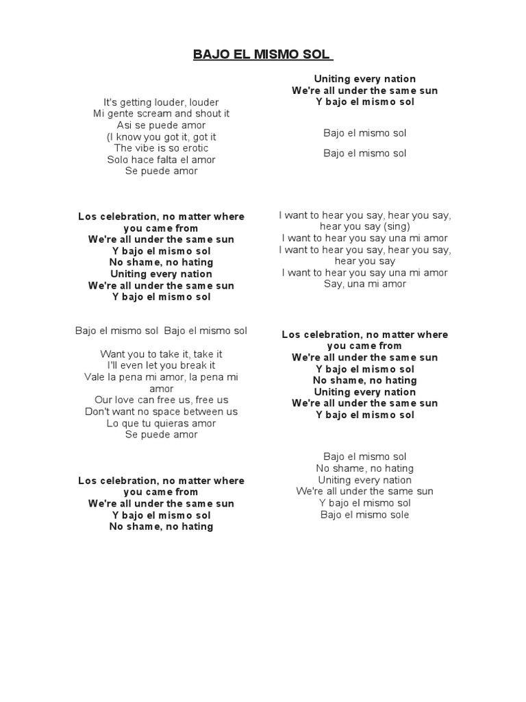 Letra De Bajo El Mismo Sol - Tendras la posibilidad de escuchar online o descargar mientras. Letra De Bajo El Mismo Sol - Flor de cuna de hip hop de sevilla y malaga.
