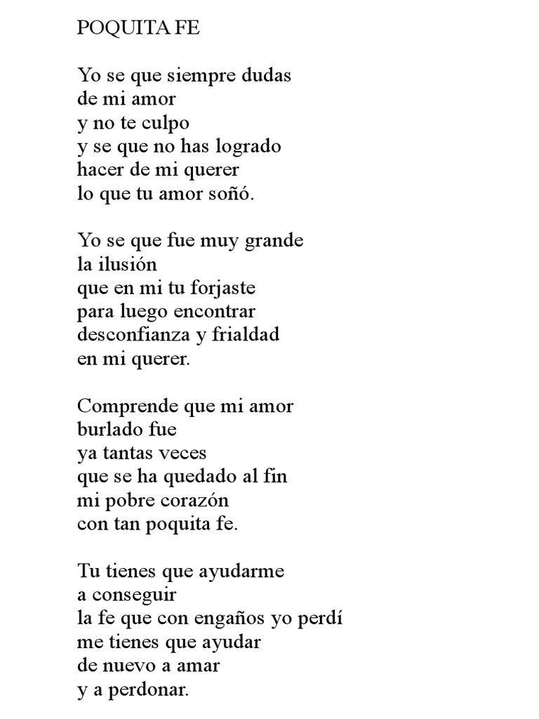 Poquita Fe Letra Y Acordes - ¿son importantes los nombres ante la potencialidad de sus poemas?, ¿no son los poemas quienes inventan a quienes creen perpetrarlos?