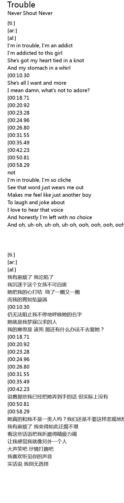 Trouble Lyrics Nevershoutnever / I've been playing to much ? Trouble Lyrics Nevershoutnever : Song lyrics of french and international singers.