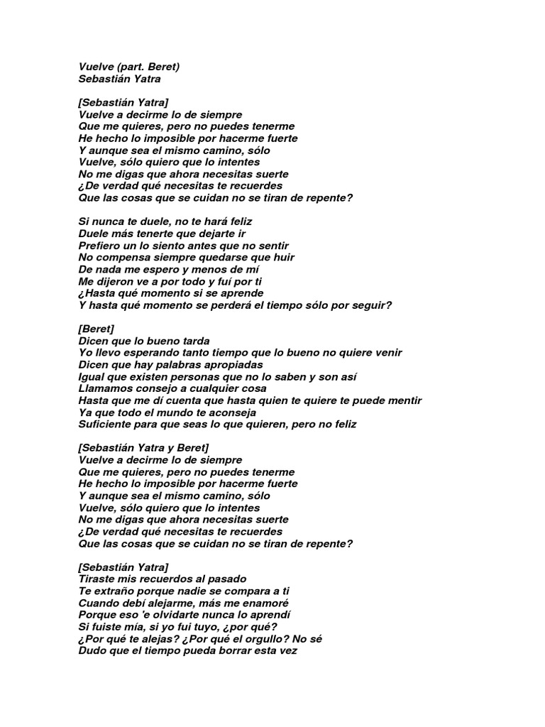 Vuelve Lyrics Sebastián Yatra Spanish - Letra y musica de sus canciones con notas para guitarra. Vuelve Lyrics Sebastián Yatra Spanish / Yo te conoci en primavera me miraste tu de primera de un verano eterno me enamore.